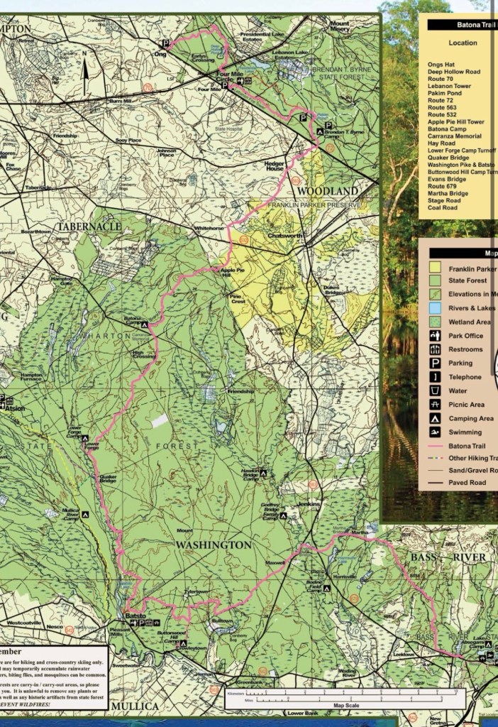 The Batona Trail is a 50-53 mile (honestly I don’t think anyone knows. It’s impossible to find a correct and accurate mileage report, more on that later) thru trail that got its name from condensing the phrase Back To Nature into the cute little name it goes by now (Ba-To-Na). The trail cuts through three state forests at the heart of the Pine Barrens. Common in Jersey lore, the pine barrens are a unique habitat punctuated with pine and oak trees and home to many cedar water rivers, flora, and fauna. And above all, the pine barrens are home to the infamous Jersey Devil, a figure who just the thought of sent shivers down my spine camping in Girl Scouts. But really, the Batona Trail is just a boring flat trail that held no interest to me. With sandy trail and monotonous views void of sweeping landscapes and vistas, why would I ever waste my time completing this trail?