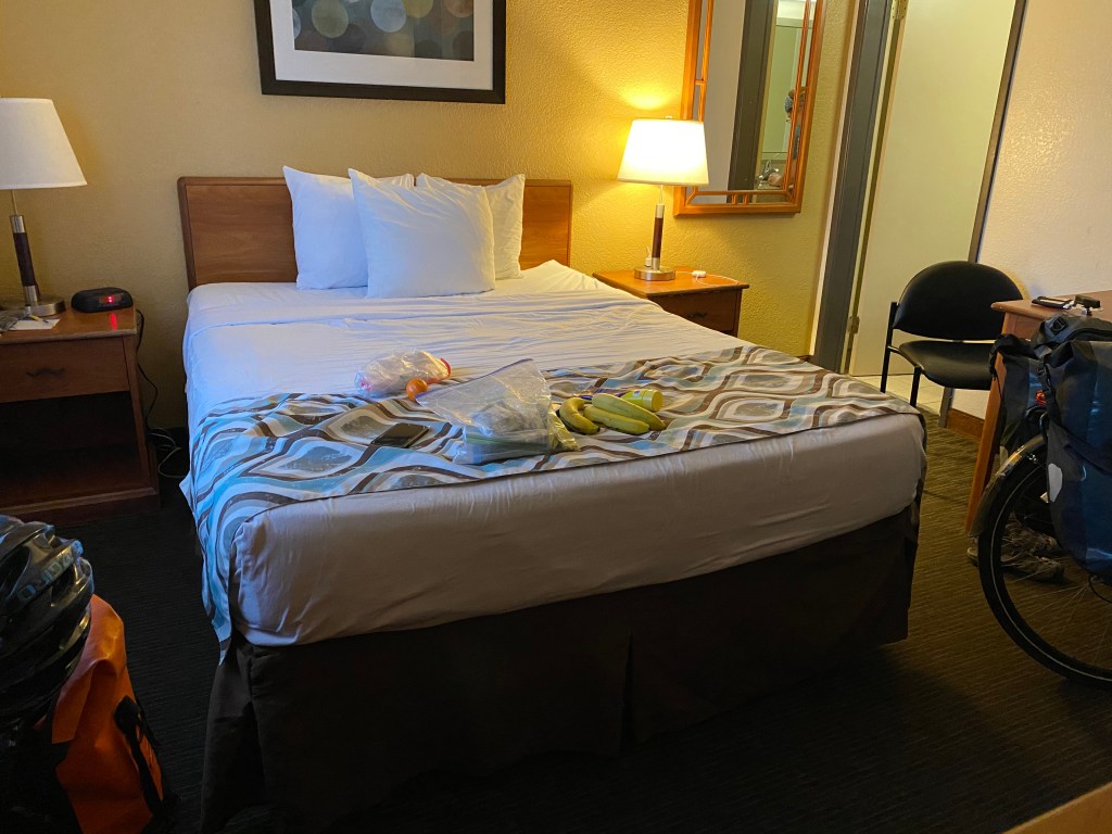 Upset that once again our plans were flipped over something so silly (the campground was full – how was preventing bikers from camping there going to stop covid?!), we sat down and came up with a game plan. The only camp grounds close to us were actually RV parks who told us to stay at Elijo when we called asking to stay there. The only real solution was to get a hotel. And the cheapest one was 3 miles from where we just came. So we bit the bullet.