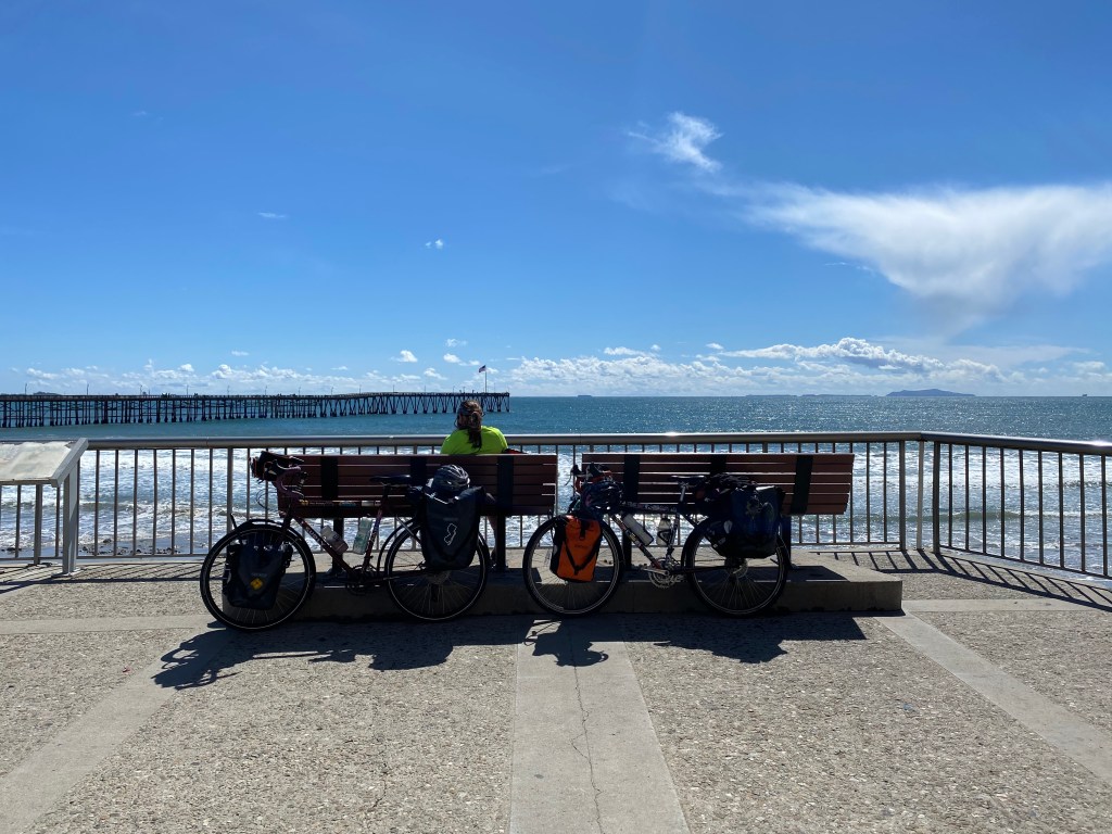 The 20 miles out of the state park to Goleta were actually a lot of fun. Compared to yesterday and Monday, it was flat and enjoyable with coastal views the whole way. We even rode next to the Amtrak tracks, the very ones we rode in 2018 that got us to San Diego super late, no shock there. My knee started to act up, but it’ll get it together soon enough I’m sure. To the east in the mountains was a storm brewing. Not wanting to get stuck in it, we pedaled quickly to the first coffee place we could find – 711.
