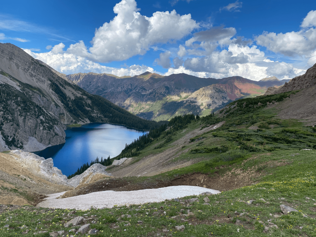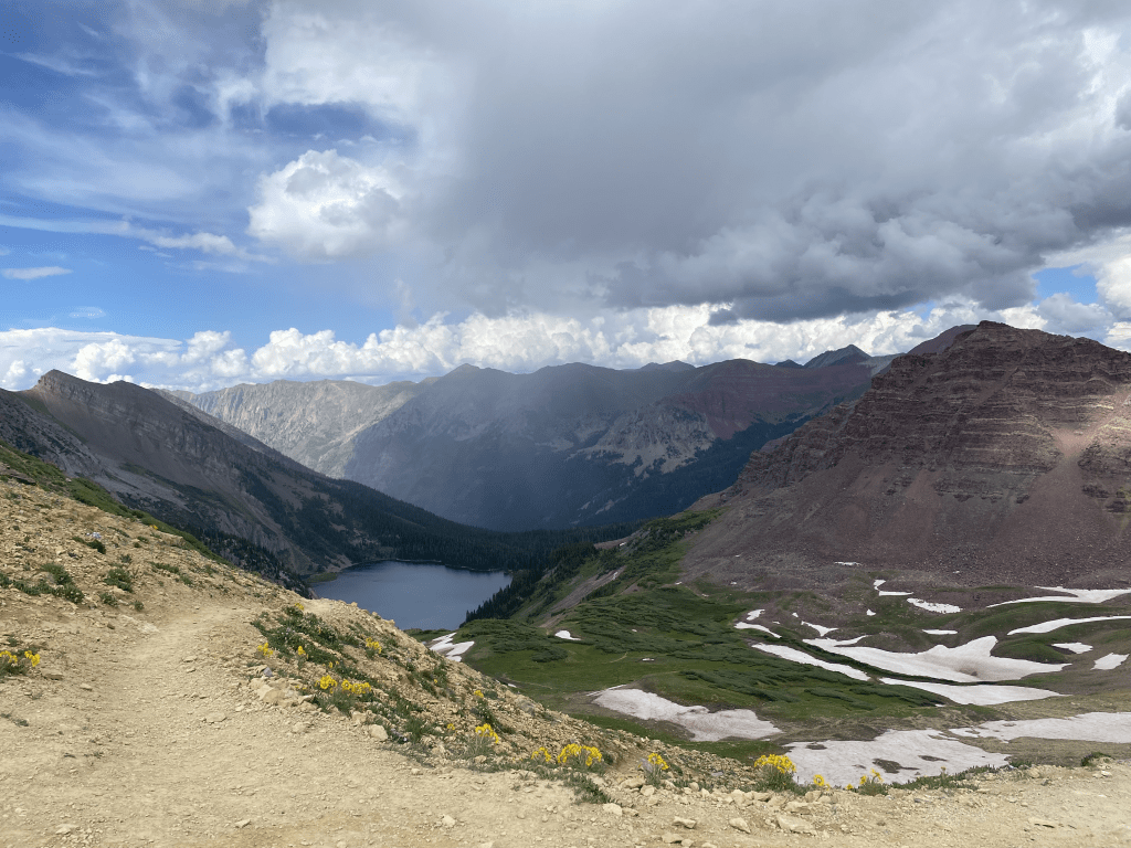 In 2018 I was fortunate enough to hike the Four Passes Loop in the Snowmass Wilderness of Colorado with my dad and two brothers. Fresh off the John Muir Trail, I was ready to take on the challenges that climbing four passes presents. Assaulted by bad weather and left almost abandoned until the fateful flip of a coin determined we trudge along (you can read about it here https://emiliebikesandhikes.com/2021/01/03/four-passes-loop-2018/). I remember this hike being one of the most gorgeous trails I’ve ever been on, so when Sheena, Craig, and Jordan suggested hiking it this summer, of course I jumped on the opportunity!