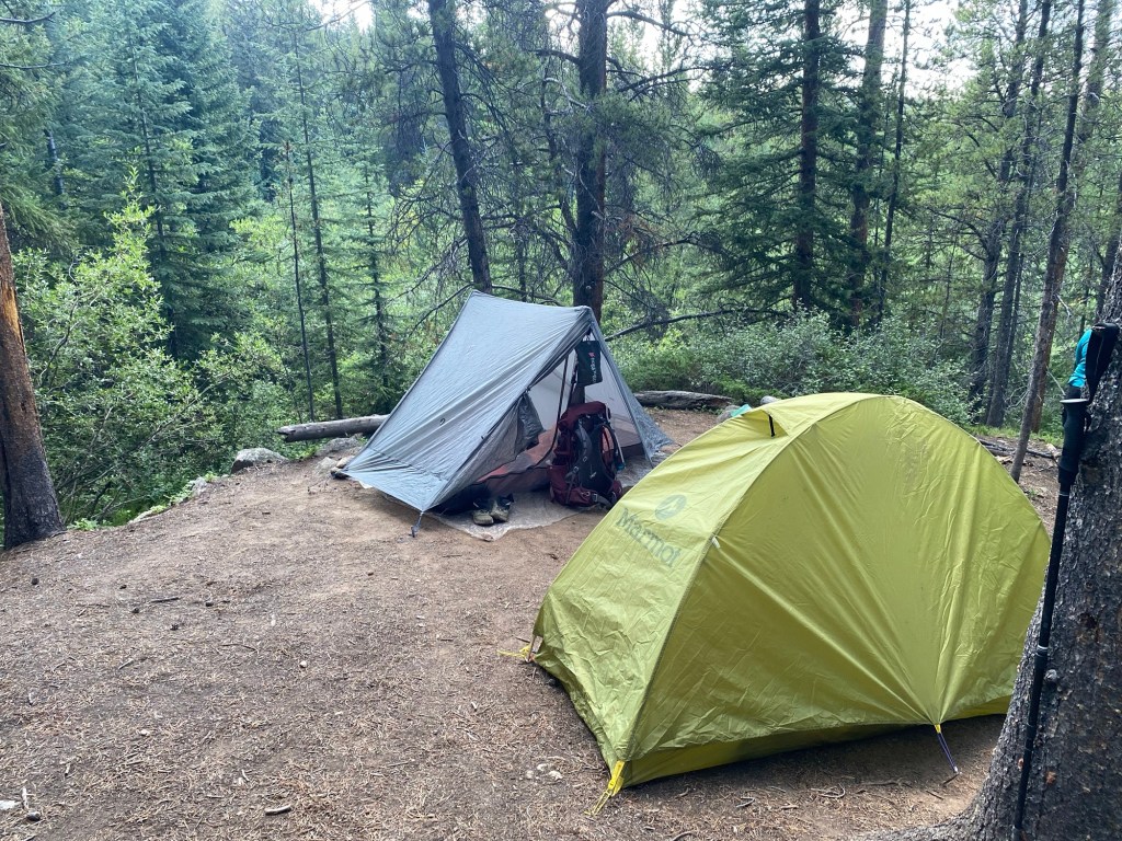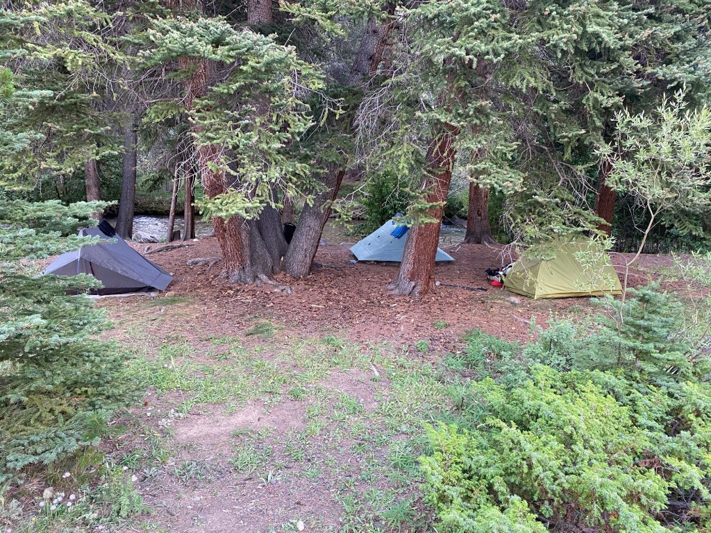 Can’t say this segment lent itself to too many views, it was primarily in the trees. But that’s okay because it was not super strenuous. With rest breaks we were able to cruise into camp at a decent hour. The best part of the hike was walking with views of Mt. Elbert right in front of us. I could even see the exact trail I went up and down yesterday! I knew Elbert would be special, probably why I knew to name my welcome bear after it!