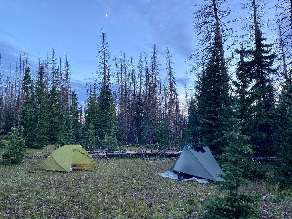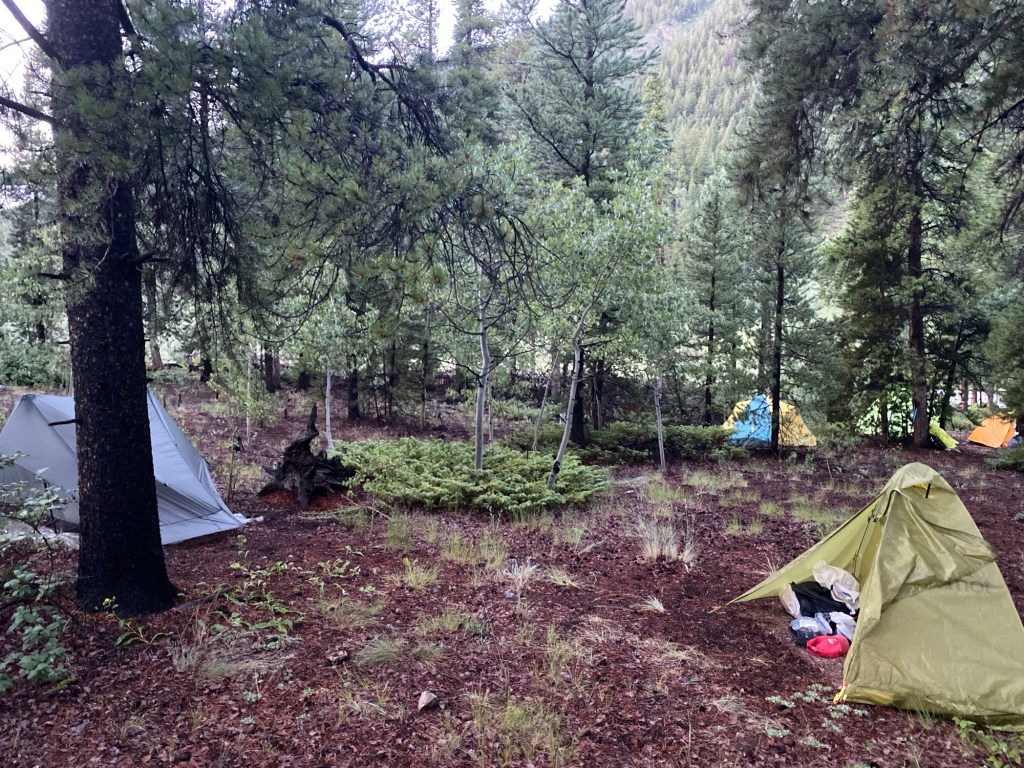 Eventually we made it to our destination, bootleg campground. And wouldn’t you know, for the third night in a row we made camp with seconds to spare before getting poured on with a side of deafening thunder. This time the storm got a little spicy and threw some hail our way. This is quite honestly getting old, would love for some good weather to come back our way.