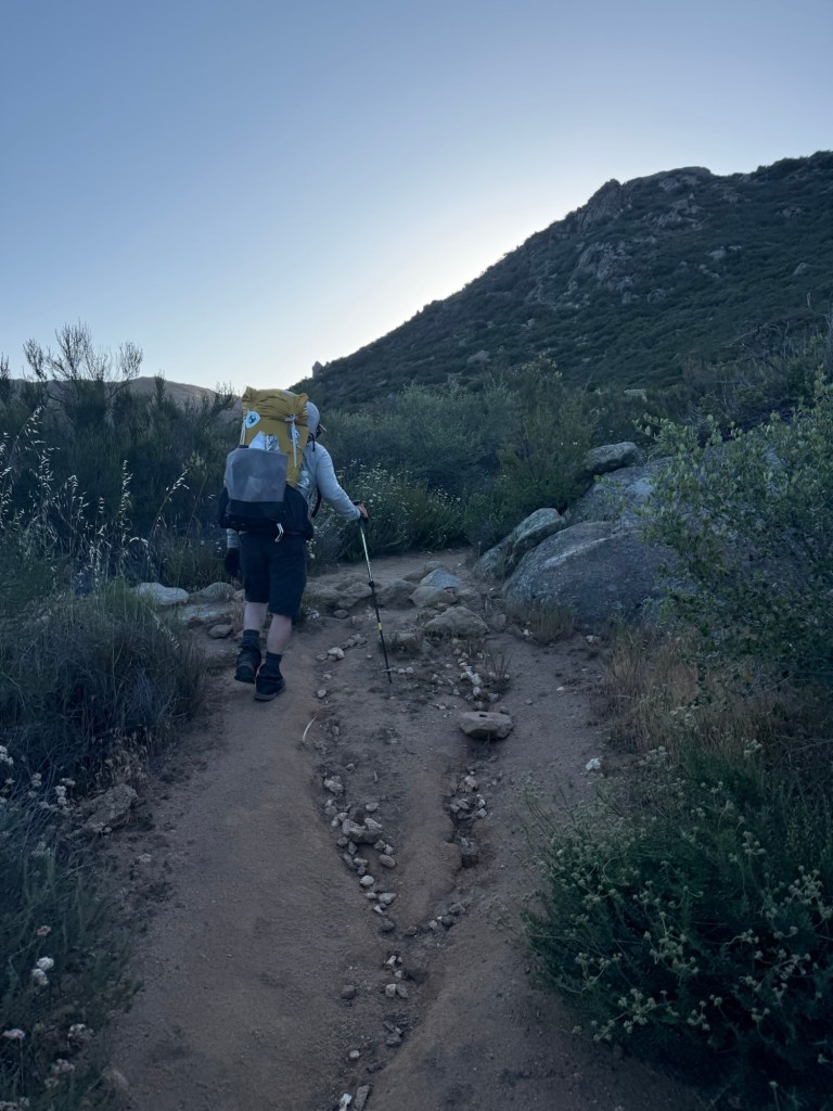There was no intention to hike this far today. After finishing 16 miles quickly, we decided to continue on an additional 2 in hopes of catching a good sunset spot. Well, it was already taken so we were forced to go another 3 on very tired and aching feet. But at least that gets us into Julian all the earlier tomorrow for a “nearo” day. We cruised into camp with enough time to make camp, cook dinner, and catch a sunset. Just around bedtime we had someone come into camp late. We met Sunshine (PHR) just a few hours before at a water source. Given that it was so late and already dark, we helped her set up camp to make her night a little less stressful. Then it was straight to bed.
