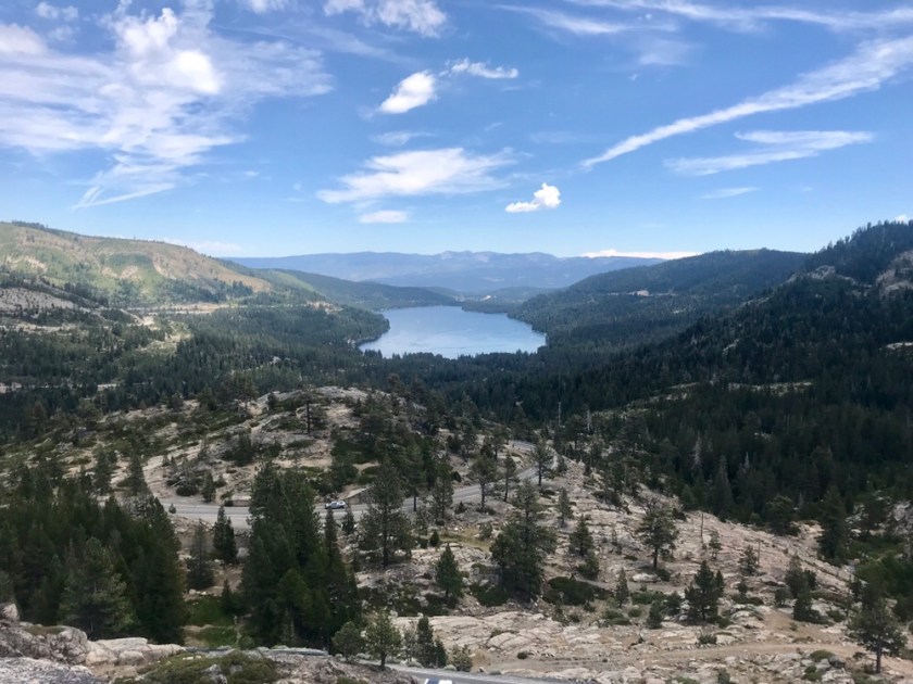 Here’s how I got here: I left Philly and flew into Reno Thursday. Because I had an entire afternoon devoid of anything to do, I rented a car and spent some time at Donner Pass and Lake Tahoe, both of which were less than an hour drive from Reno. If you know anything about the Donner Party, then you might know why I found it a must see. Though you wouldn’t know at the peak, the Donner Party resorted to cannibalism when stranded in the Sierras for months at a time during the height of winter. The plaques at the top just touch upon the “hardships” the pioneers faced and how so few of them survived. It makes for a less gruesome story I suppose. But I paid my homage and ironically thought how such a tragedy could happen in a place of such striking beauty. I also dwelled upon their crisis and hope a similar one doesn’t befall me on the trail!