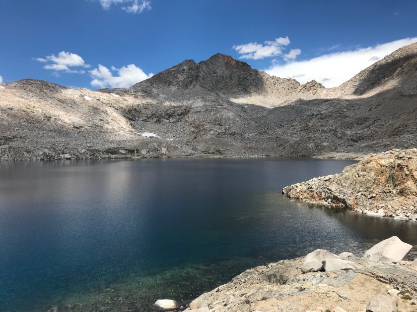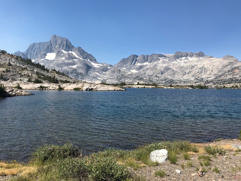 This morning, I passed nothing but lakes.  From Shadow, to Ruby, to Garnet, to Marie, it was nothing but lake after lake that I’ll never be able to keep straight.  Garnet and Thousand Island Lake were the big ones. And they were pretty darn stunning.  In fact, Thousand Island Lake is pretty infamous along the JMT.  Originally, we were going to stay there for a half day.  I scratched that plan last night.  Good thing. Cause only 8 miles from Rosalie Lake, I got there at 10:30am.  I would’ve been quite bored.  Plus a lot of people had the same idea of staying there and it was pretty packed.  Not my kind of scene.