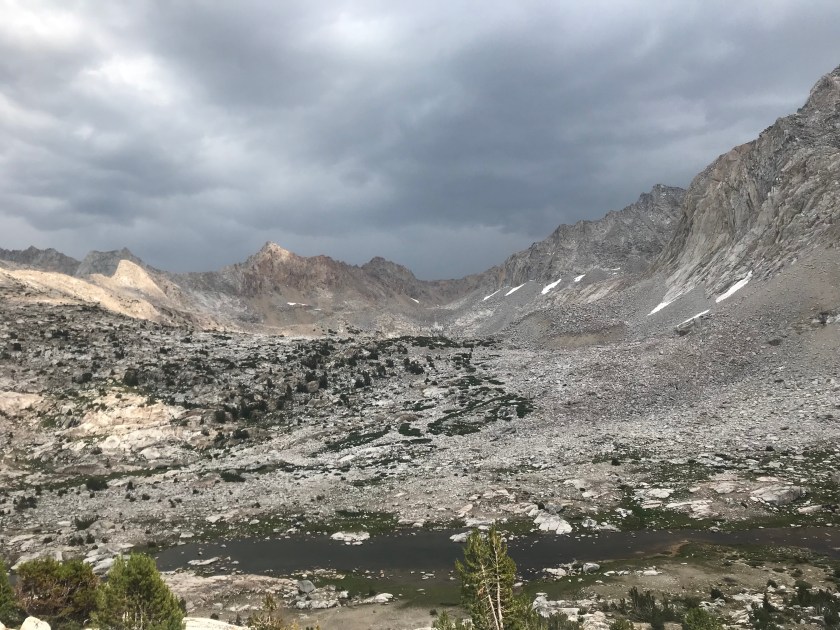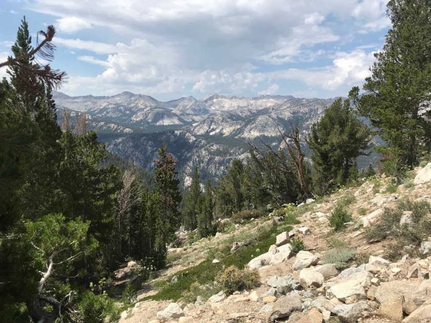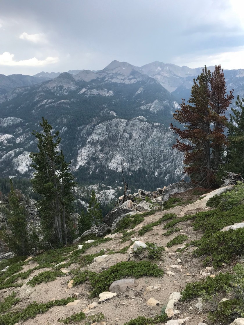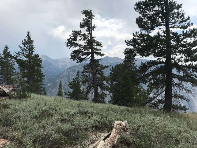 My whole body was sore and tired from overdoing it yesterday. I attacked this pass with a whole lot less tenacity than I did Selden Pass. I hated nearly every second of it.  I found excuses to stop every half an hour (well is refilling water really an excuse? It was hot I was drinking a ton of water!), making the climb take even longer.  I take back what I said yesterday about northern passes being gentle and gradual.  Leading up to Silver Pass was steep, ungodly so.  I suffered today, my friends.  But like all the other passes, the suffering eventually came to an end and I made it atop.  At 2pm, much later than I would’ve liked.  Although it wasn’t my favorite pass to get atop, it did yield one of my favorite views, even with the hazy smoke! At the top, I met Jeb, a fellow NOBO hiker who hiked the trail SOBO in 2016.  His pace is much faster than mine, so this is likely the only time I’ll run into him. He left and not soon after, so did I.  The rumbling of thunder was heard in the distance and soon rain fell from the sky. Being fully exposed on a pass, I knew I had to get down. Quickly.