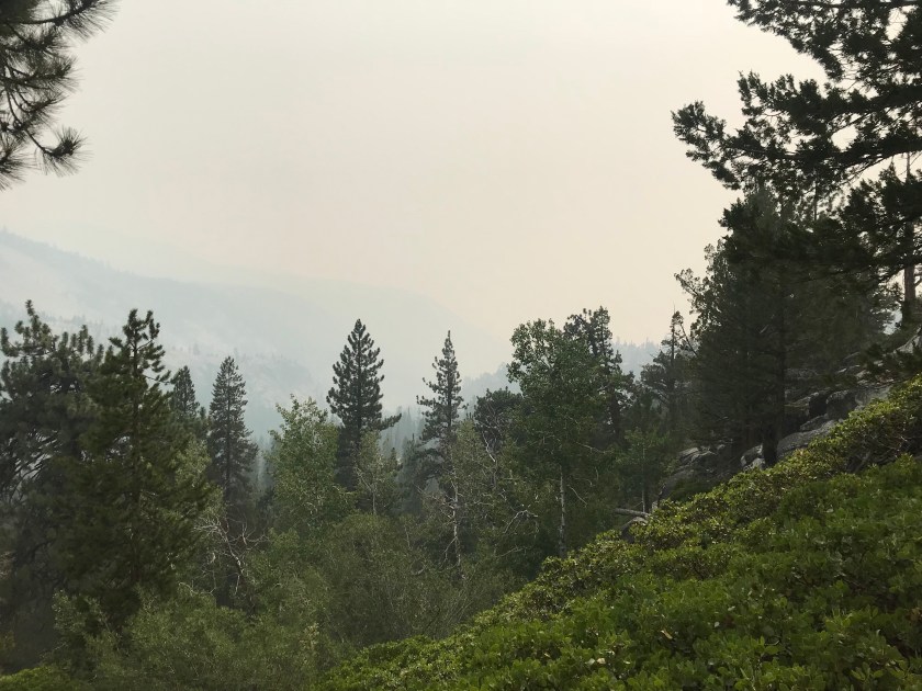 In the morning I went to a coffee shop to try and figure out a game plan for getting to Yosemite amidst all these fires.  Mammoth is extremely smoky. In fact, I woke up to the smell of smoke this morning.  I know that a bunch of JMTers are either cutting their hike short or cancelling it altogether because of reports of smoke.  I began to question whether my bullheaded decision to try to push to Happy Isles was smart, or (more importantly) safe. Ultimately I came up with the conclusion that if the smoke gets too much to handle, I’ll just turn back and come home from Mammoth.