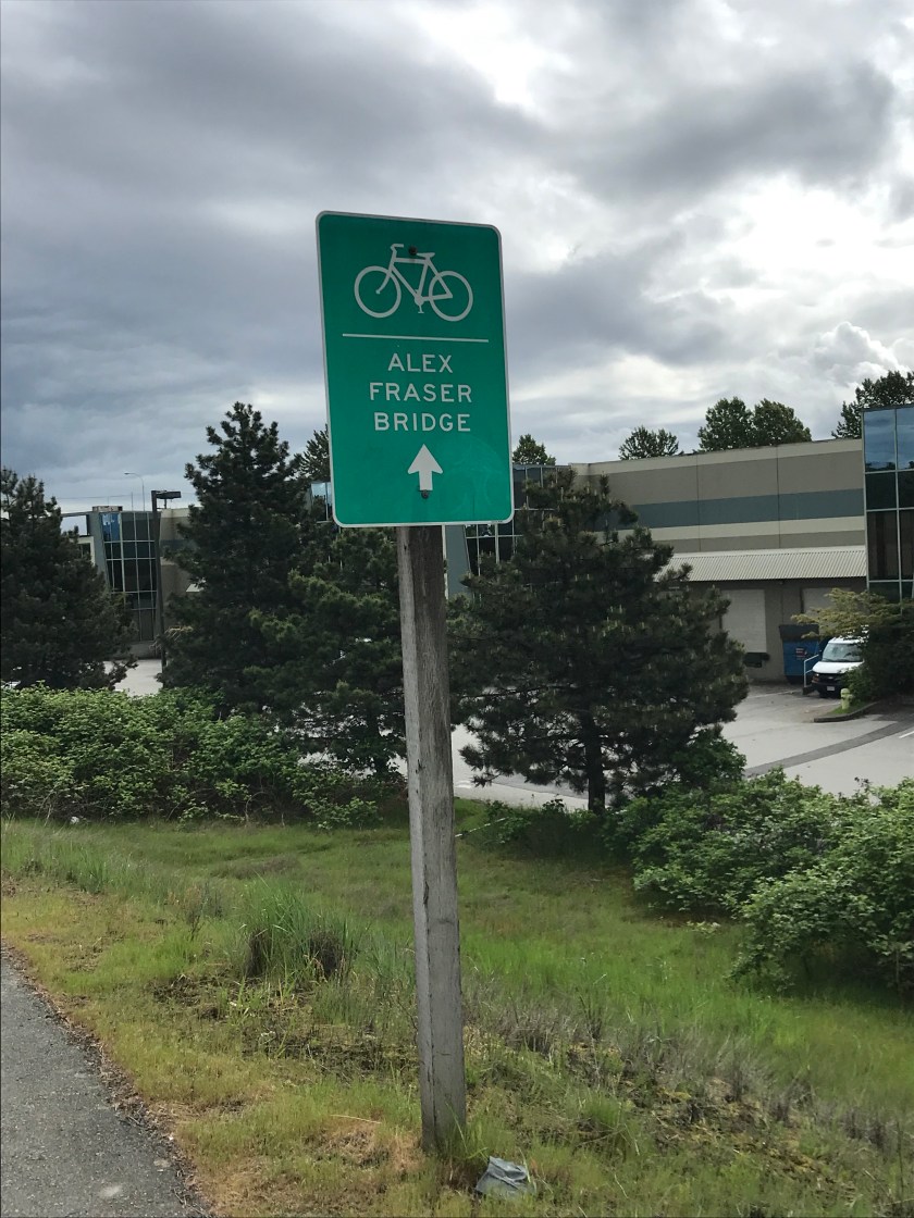 We started early, 6:30 am to beat rush hour traffic. We had to ride 2 miles to the official start in the rain, which wasn’t nearly as cold as I was anticipating. The rain subsided and we had a smooth and easy ride through a really ritzy neighborhood with beautiful houses. Definitely some major wealth in that part of the city. Unfortunately, that’s where the smooth ended. Trying to find the pedestrian path to cross the Alex Fraser Bridge was a complete nightmare. The signs in Canada are less than helpful, especially when they point you in the wrong direction and leave you to wander a highly trafficked industry area for over an hour, tacking on useless mileage. Needless to say, I am not a fan of this Alex Fraser character.