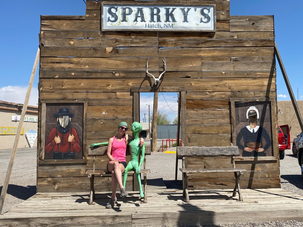 We enjoyed 10 miles of downhill to Hillsboro and had coffee before setting out for a long day of riding. But luckily it was pretty much all downhill/flat. We blew into Arrey quickly and had a pre-lunch snack. A big thing in New Mexico is green hatch chile and everyone has been raving about the green hatch Chile burger at Sparky’s in the town of Hatch (who apparently is known not only for hatch chiles, but also pecans. Thanks to Random Facts Bob, also known as Bob the Weatherman). So I was pretty jazzed to check it out for myself. And with only 17 miles left to Hatch, I didn’t want to ruin my appetite.
