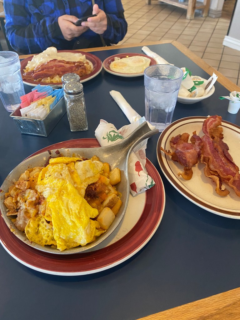 All this plus a head sized cinnamon roll was gone in 10 minutes, causing us to be full for 12 painful hours.