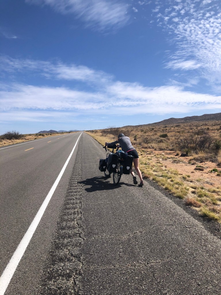 Getting out of El Paso is going to be rough. Mike warned us that any way we take is going to be dangerous with traffic. So we’re going to just be careful and take it slowly. After we get outta El Paso, there’s not much of anything. It’s going to definitely be a mental and physical challenge getting through this state, especially with rising temperatures. But we’re up for the challenge!