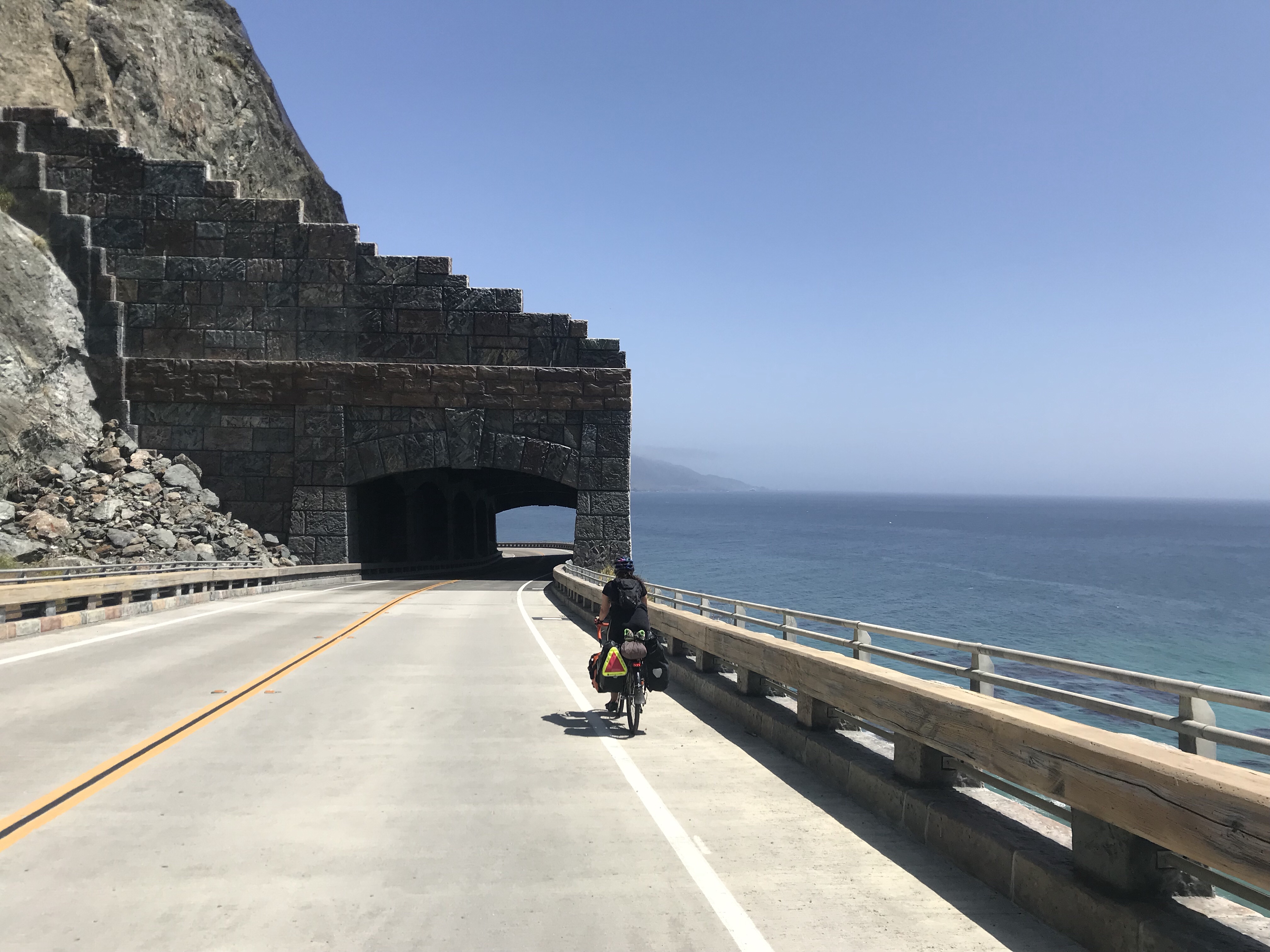 Now for the real challenge of the day: Two years ago there was a massive mudslide that took out a bridge and a section of route 1 (the very road we’re taking down the coast). Obviously, these closures will put a bit of a bump in our plans to bike down to San Luis Obispo – only 60 miles away. Fortunately, the bridge is open and we rode across it yesterday! Awesome! Unfortunately, however, the road is still closed just past Gorda, right where we find ourselves now. So what do we do?! Well we’re for sure not biking all the way back to Monterey (as beautiful as that ride is) and we’re not taking a detour up a dangerous pass without a shoulder. So that leaves us two options – pick up a shuttle in the morning with a couple we met today to bypass the slide, or we cross it. Being fools for adventure and cheap ones at that, we are opting to cross.