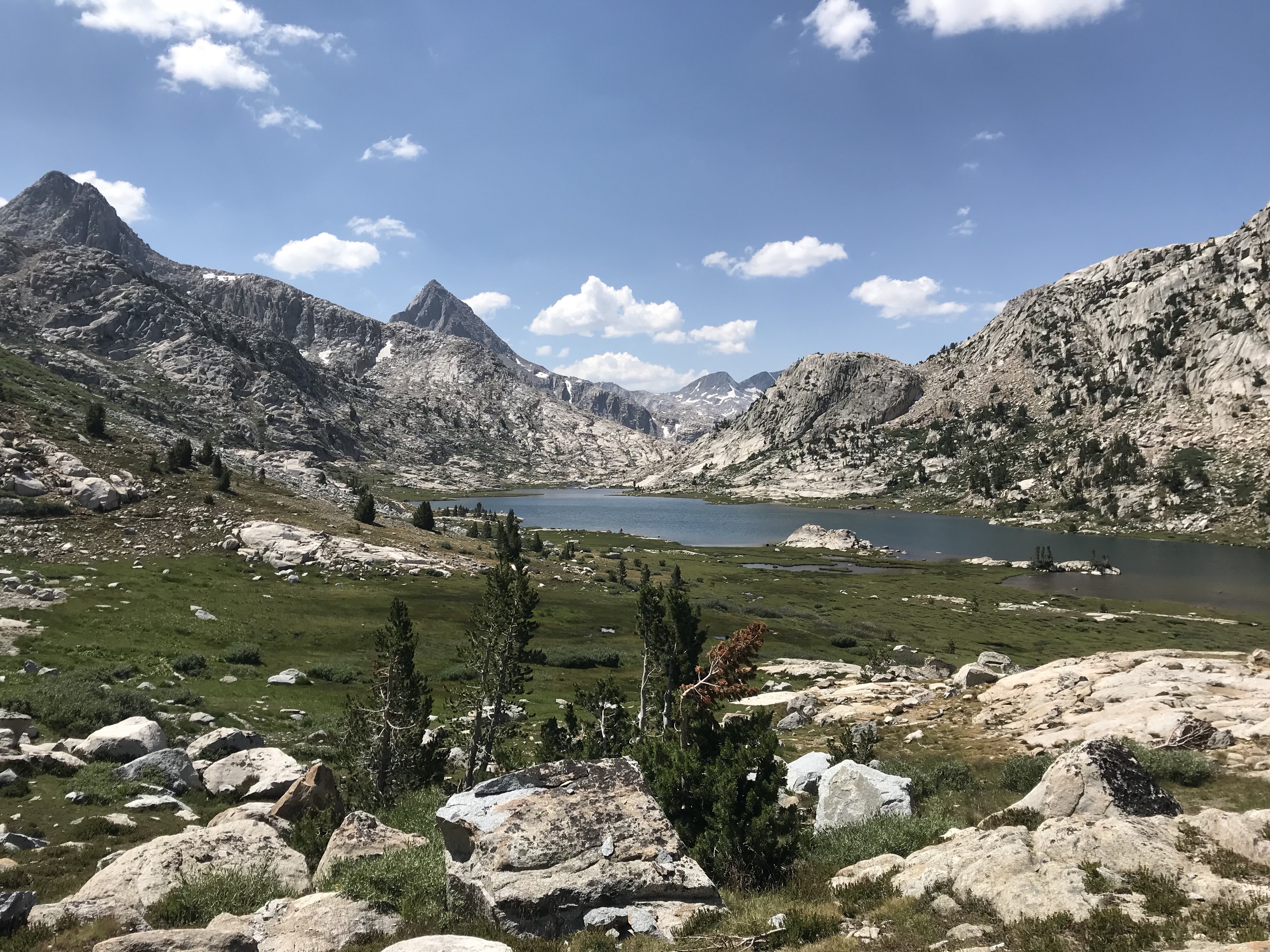 The full moon out here is crazy. Last night, I woke up positive it was dawn. When I looked at my watch, I was shocked to see it was only 2:44am! The whole canyon was lit completely up just by the moon. The lake was gorgeous showing the reflection of the full moon. However it didn’t help with sleep, so I was forced to put my hat over my eyes for some darkness. Tonight we’re 3K’ lower in elevation and in trees so hopefully the moon doesn’t interrupt precious sleep again!