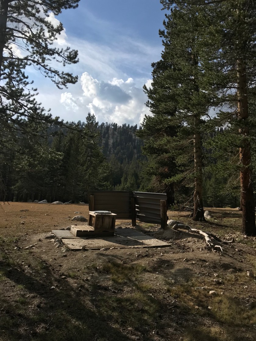 Still super paranoid about missing the pack mule, I jumped again of Mary Beth and Sam. I basically ran to where I believed the meeting spot was. I arrived before I knew it at 2pm. I was told “anytime in the late afternoon”, so I knew it could be a while. So I just sat and was left dwindling my thumbs, cause I had already chewed down my nails in a nervous frenzy. The dark clouds followed me, making me nervous that I’d be waiting in the rain. Soon I heard thunder… but I also heard the clomping of hooves. I looked up and saw a beautiful sight. I saw a cowboy with a fully loaded mule! A mule fully loaded with our resupply!! What a relief that it had all worked out! If anyone is embarking on the JMT and wants a reliable pack service, look into Cedar Grove Pack Station. They’re easy to communicate with, reliable, and even bring in fresh fruits and vegetables for you! When I told him (he looked EXACTLY like Mitchell from Modern Family) I wasn’t sure if he’d make the delivery in bad weather, he retorted, “no ma’am, we’re like the USPS. We delivery rain, snow, or shine. ”